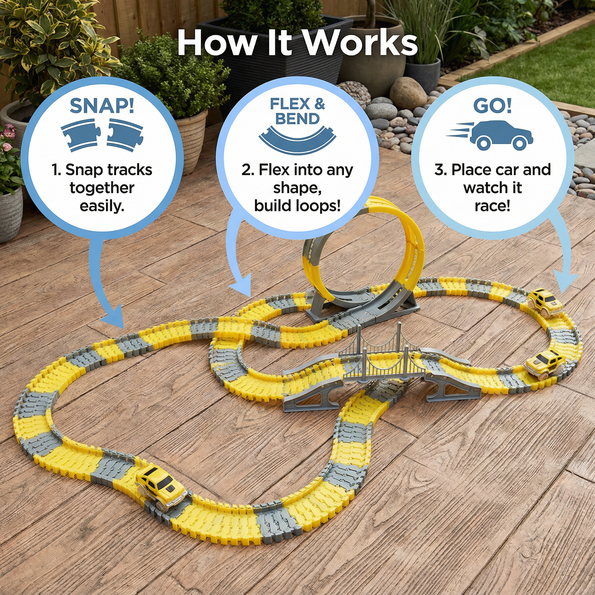 In addition to the competition, children can design their own race tracks, stimulating their imagination. This way, every race becomes a new, creative adventure!